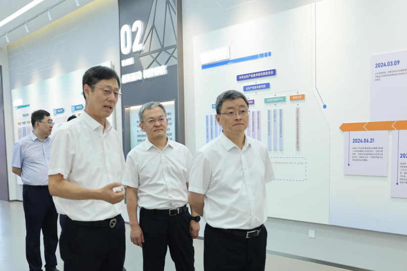 同时,于海田一行赴山东产研院展厅进行参观交流,全面了解建院背景、运行机制、职能定位、发展成果等情况。于海田对山东产研院在推动科技创新、促进产业升级等方面取得的显著成效给予充分肯定。他强调,山东产研院要紧紧围绕全市经济社会发展大局,进一步发挥平台优势和引领作用,聚焦前沿技术和关键领域,深化产学研协同创新,加速科技成果转化和产业化进程,为济南市加快建设高水平创新型城市、实现高质量发展注入更强动力、作出更大贡献。