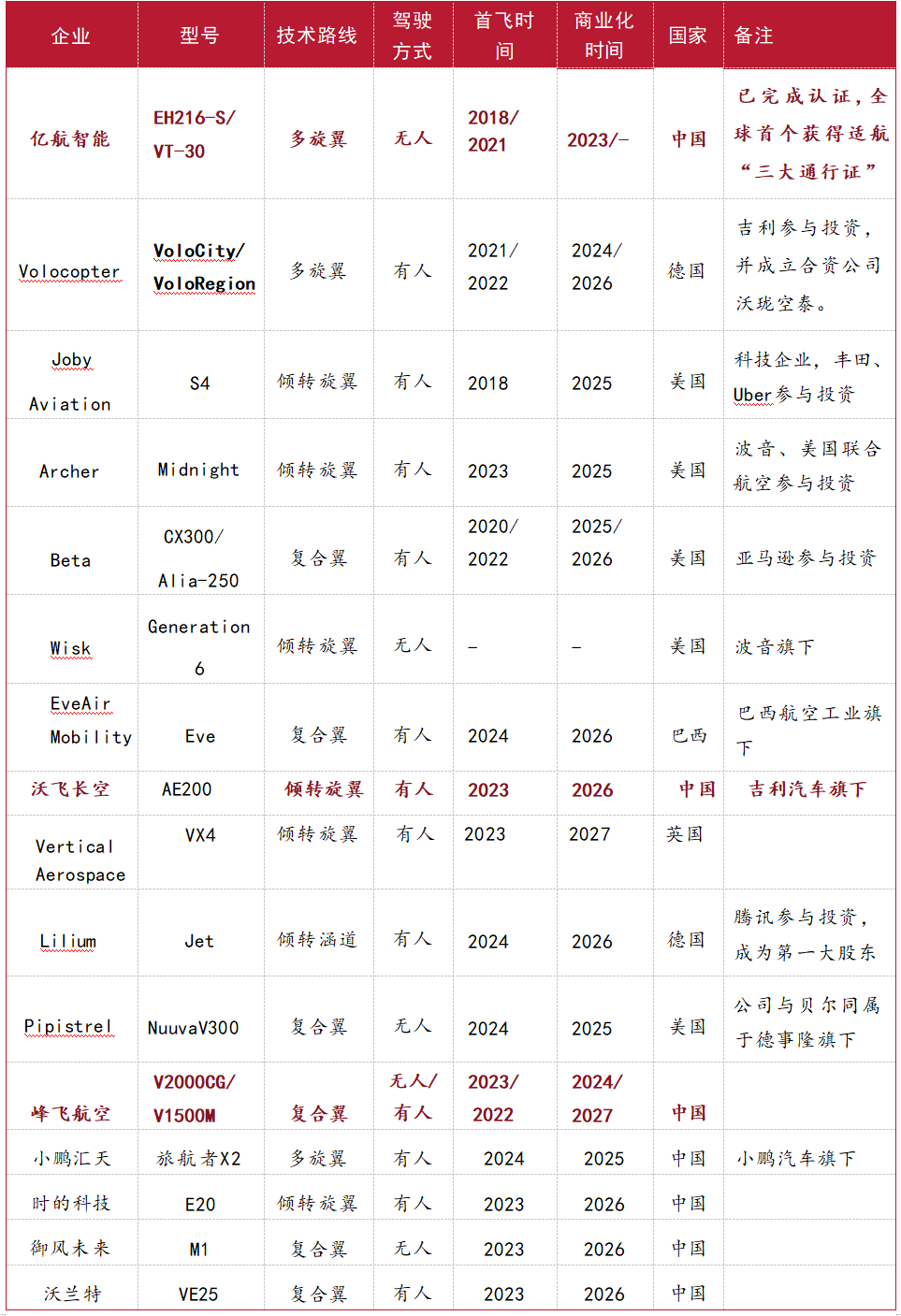 2. 国内外 eVTOL 重点企业