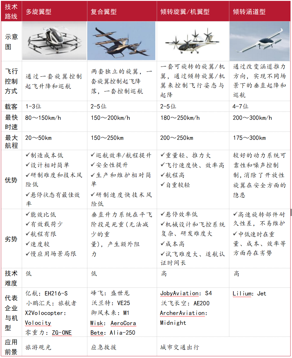 表 2:eVTOL 旋翼技术路线对比