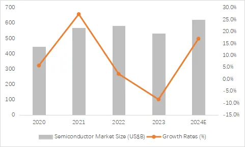 全球半导体市场规模(十亿美元)及增速