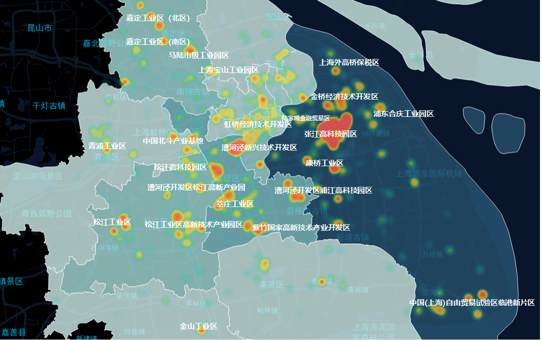 上海集成电路产业主要园区的企业用工需求热力图