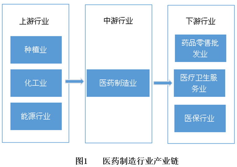 从产业链示意图可以看出医药行业的上游行业主要包括药材种植业、化工行业、能源行业三大类,下游行业包括药品批发零售业、医疗卫生服务业和医疗保险业。