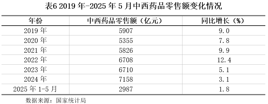 从需求端来看,居民消费信心及预期相对谨慎,经济和消费仍处于转型调整期。医保改革持续深化,门诊共济、药店统筹、药价治理等政策对医药零售市场格局持续施加影响,医药零售市场整体进入弱增长时代。国家统计局数据显示,2025年1-5月,全国中西药品累计零售额达2987亿元,同比增长1.8%,增速较2024年同期回落2.6个百分点。