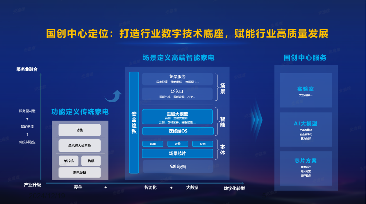 山东产研院投资的青岛国创智能家电研究院有限公司,于2021年11月3日由工信部正式批复为国家高端智能化家用电器创新中心(以下简称“国创中心”),是我国家电行业唯一一家国家级制造业创新中心。经过近4年的持续创新经营,构建了行业唯一“从芯片定义和设计,到核心算法和工具链,到测试验证和标准制订,到芯片和板卡解决方案”等全流程能力,搭建起了国产芯片替代的高速公路,不仅服务于家电行业,也可以服务于工业控制领域,累计服务典型企业30余家,带领家电行业国产芯片替代能力提升至70%以上,得到了李强总理、刘国中副总理、金壮龙部长等多位领导认可。